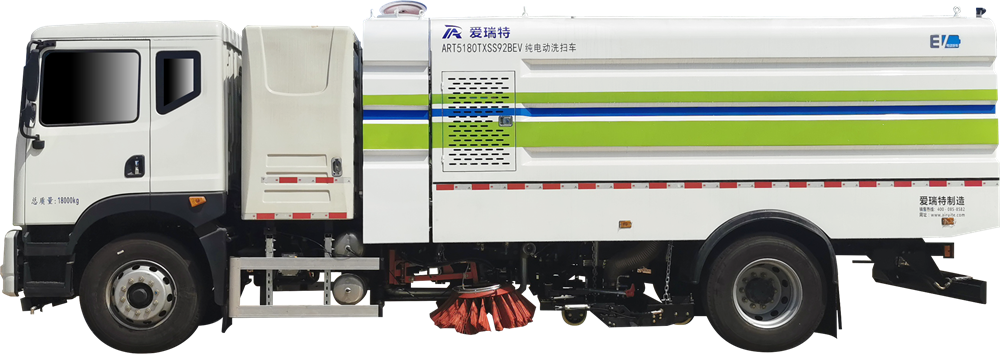 ART5180TXSS92BEV The pure electric washing and sweeping vehicle is mainly used for the general sweeping operation of the main road surface. It integrates the functions of cleaning and high-pressure washing. It can quickly clean the fallen leaves, stones, sand dust, white garbage and dump the garbage.