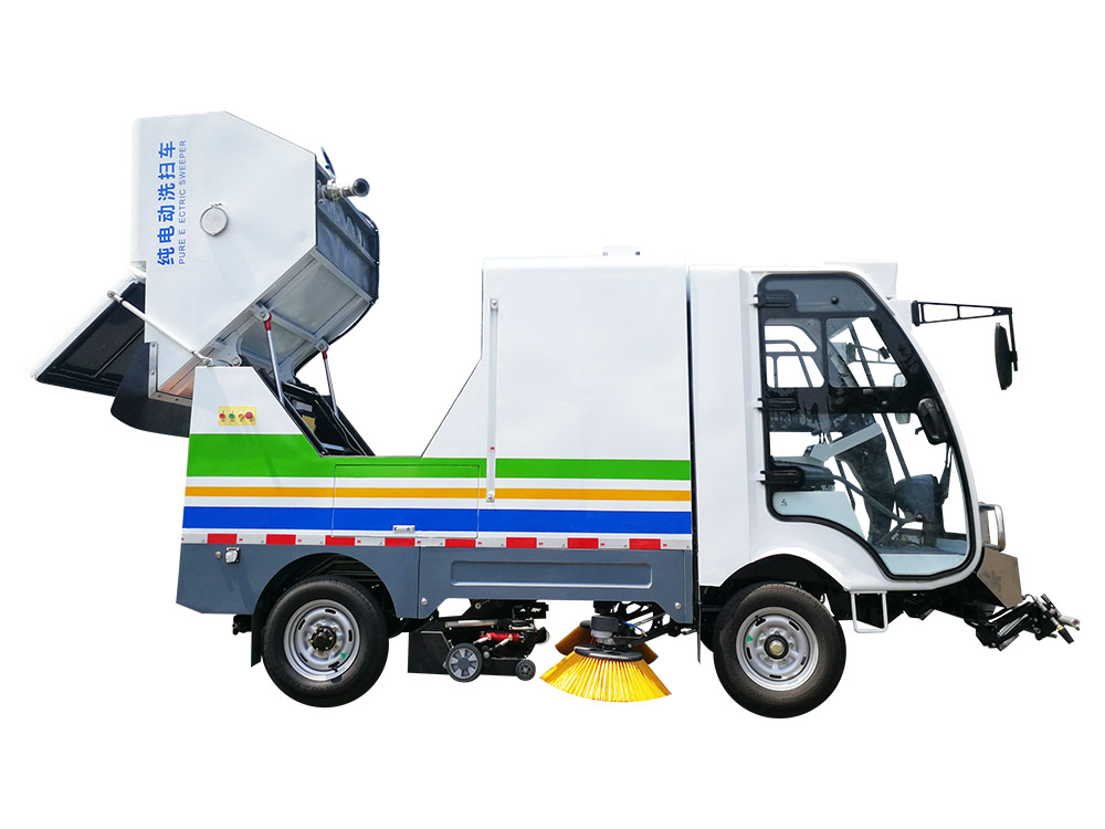 Ruiqing S26 pure electric road cleaning vehicle is mainly used for general cleaning of main roads and auxiliary roads. It integrates the functions of cleaning, high-pressure washing and sewage recovery. It can quickly clean fallen leaves, stones, sand dust and white garbage. Garbage and sewage are collected synchronously and dumped at a high position.