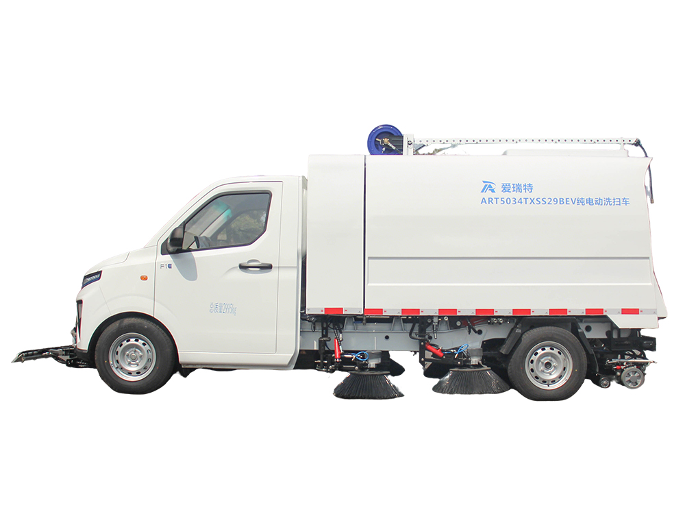ART5034TXSS29BEV純電動洗掃車主要用于主干道、非機(jī)動車道、背街小巷等路面的普掃作業(yè),集清掃、高壓沖洗等功能為一體,可快速清掃落葉、石子、沙塵、白色垃圾等,垃圾,自卸傾倒。
